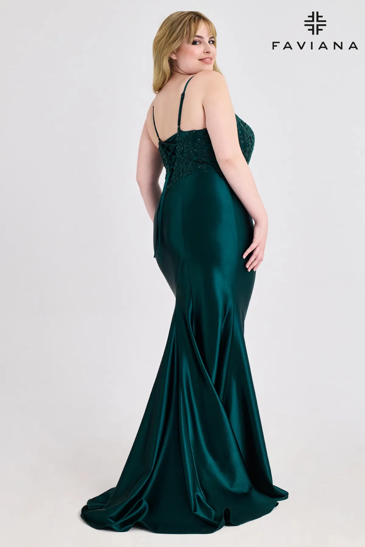 Plus Size Satin V-Neck Dress With Applique Detailing