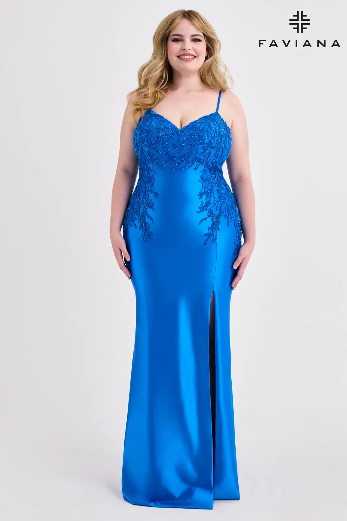 Satin Plus Size Dress With Flattering Beaded Lace Applique